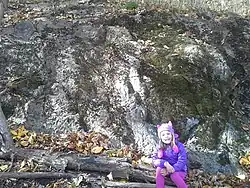 It is an extinct volcano dating to the Neoproterozoic and is approximately 704 million years old (+/- 4 million years) as dated using the U-Pb zircon crystal geochronology method. It is a unit of the Robertson River Igneous Suite[2] and is located within the Blue Ridge anticlinorium. This volcanic formation was a result of crustal extensional rifting of the eastern Laurentian margin of the supercontinent Rodinia.[3] This was the beginning of a chain of events that ultimately gave birth to the precursor Atlantic, the Iapetus Ocean at 550 Ma during the Ediacaran–Cambrian transition.[4]