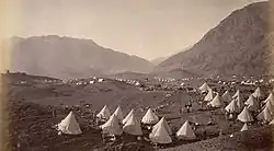 The Battle of Ali Masjid, which took place on 21 November 1878, was the opening battle in the Second Anglo-Afghan War between the British forces, under Lieutenant-General Sir Samuel James Browne, and the Afghan forces, under Ghulam Haider Khan. The perceived offence of an Afghan general's refusal to allow a British envoy entrance to the country was used as an excuse to attack the fortress of Ali Masjid, as the opening battle in the war.[1] Despite numerous setbacks, including half the troops getting lost or delayed and missing the battle entirely, the British were lucky that the Afghans abandoned their position overnight.[4]