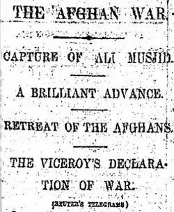 - ^ Irish Times, "The Afghan War", November 25, 1878