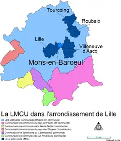 - ^ Lille lies between the rivers Lys, Escaut and Scarpe, in the plain before the hills of Artois, between Maubeuge and the port of Dunkirk. In 1873, General Séré de Rivières, Director of the Engineering Section at the Ministry of War, began a programme of fortress-building to reorganise the defences of the northern frontier, with Lille as one of the pivots.[6] At the end of the century, the fortifications had fallen into disrepair and by July 1914, 3,000 gunners and nearly a third of the guns had been removed. On 1 August, the Governor, General Lebas, received orders to consider Lille an open city but on 21 August, his successor, General Herment, reinforced the garrison from 15,000–25,000 and then to 28,000 men, drawing units from each regiment in the 1st Region.[7]