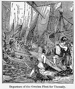 The Persians were alerted to the withdrawal of the Greeks by a boat from Histiaea, but did not at first believe it. They sent some ships to see if this was the case, and finding that it was, the whole fleet set sail for Artemisium in the morning. The Persians then sailed on to Histiaea and sacked the surrounding region.[60]