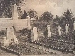 White crosses and Stars of David mark 2,289 graves, 250 for unknown service members, and the names of 1,060 missing men adorn the wall of a memorial chapel. Visitors also stop at the nearby German cemetery where 8,625 men are buried; 4,321 of them—3,847 unknown—rest in a common grave. The German cemetery was established in March 1922, consolidating a number of temporary sites, and includes men killed between the Aisne and the Marne in 1918, along with 70 men who died in 1914 in the First Battle of the Marne.[5][21]