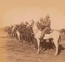 In the first days of the Second Boer War, Boer forces besieged British garrisons at Kimberley and Ladysmith.[2] A 40,000-strong Army Corps under the command of General Sir Redvers Buller was dispatched to South Africa and arrived in early November 1899.[3] To relieve Kimberley and Ladysmith, Buller divided his forces,[4] leading one division in an advance on Ladysmith, while the 1st Division of Lieutenant General Lord Methuen was tasked with breaking the Siege of Kimberley.[5]