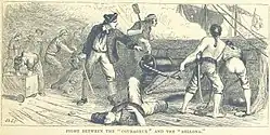 A view from the deck of Bellona during the engagement with Courageux, by Frederick Whymper.
