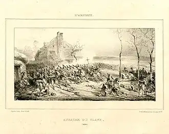 The Battle of Claye took place during the War of the Sixth Coalition.[2][3] Both sides made advances, but the French force, which was perceived by the Prussians to be much smaller, dealt many casualties to the Prussian troops.[4][5] Some sources claim the battle was a victory for Prussia, while others claim the battle may have resulted in a French victory.