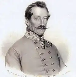 On the other hand, the Austro-Russian coalition prepared to attack Hungary with 358,000 soldiers and 1354 cannons (165,000 Austrians with 770 cannons and 193,000 Russians with 584 cannons).[10] While Russian and Austrian army groups, led by General Alexander von Lüders and General Eduard Clam-Gallas, prepared their attacks on Transylvania from Bucovina, Wallachia and Moldavia, (53,000 soldiers and 133 cannons against 39,000 Hungarians, who were mainly fresh recruits, and 107 cannons), the main Russian army under the lead of Field Marshal Ivan Paskevich had to advance from the north (135,000 Russian soldiers and 448 cannons against 16,500 Hungarians with 49 cannons), and the Austro-Croatian-Serbian troops led by Feldzeugmeister Josip Jelačić operated in Southern Hungary (53,000 soldiers with 401 cannons against 34,000 Hungarians and 249 cannons).[10] The numerical disadvantage of the Hungarian armies was also augmented because 13% of the Hungarian troops in Transylvania and Eastern Hungary were used in the sieges of different fortifications in imperial hands (Arad, Temesvár, Gyulafehérvár, Titel) (around 12,000 men), while others (8000 men) were garrisons in different fortifications, so they could not be used as moving forces against the invading Austro-Russian armies.[11]