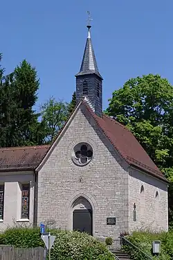 The expulsion of the Hessian troops from the narrow area near Weiberhof created favorable conditions for the unification of the Prussian marching columns, and the battle that lasted until late in the evening had caused heavy losses for the Hessian division. The Hessian regiments withdrew to Aschaffenburg, where no provisions had been made for their accommodation. So the next day, when they tried in vain with an Austrian brigade in the Battle of Aschaffenburg, the 13th Division crossed the Mainto refuse, still under the impression of the previous day's defeat in the battle. With the crossing of the Main, the operations of the Prussian troops against the VIII Federal Corps were no longer obstructed by any major terrain. The way to Frankfurt and Darmstadt was free for the Prussians . The Hessian Grand Duke Ludwig and his government fled to Worms [3] and / or Munich.[4] Frohnhofen itself resembled a hospital for days. A group of doctors and nurses from the Hessian field hospital, who later took care of the wounded, found them only poorly cared for in unfavorable hygienic circumstances. The care of the partly seriously wounded had been entrusted to the local population. It was not possible to transport the fallen Hessian soldiers away due to the summer temperatures and the associated rapid decomposition process of the corpses, which is why mass graves were dug right next to the bowling alley. After the end of the war, memorial stones for the fallen were erected here by the Grand Duchy of Hesse.