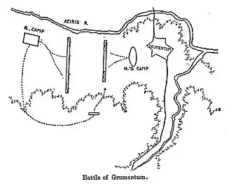 The Battle of Grumentum was fought in 207 BC between Romans led by Gaius Claudius Nero, and a part of Hannibal's Carthaginian army. The battle was a minor engagement that Roman sources inflated as a major success.[1] According to Livy, the Romans killed 8,000 Carthaginians and took 700 prisoners for the cost of 500 dead Romans. The Carthaginian loss figures for dead and prisoners appear suspiciously out of proportion to each other.[1] Just north of the battlefield the next day, an irregular clash occurred where allegedly another 2,000 Carthaginians were killed. Afterwards, Nero marched north, where he defeated and killed Hannibal's brother Hasdrubal at Metaurus. The battle is described by Livy at 27.41-42.[2]