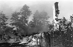 In mid-August 1944, a partisan group called the Kampinos Group was formed from the units continuously arriving in the forest.[6] At its peak, it numbered around 2,700 soldiers and 700 horses.[7] By the end of August, the Kampinos Group controlled the central and eastern areas of the Kampinos Forest, including the villages of Ławy, Łubiec, Roztoka, Kiścinne, Krogulec, Wędziszew, Brzozówka, Truskawka, Janówek, Pociecha, Zaborów Leśny, and Wiersze. Polish patrols could also penetrate numerous neighboring localities not yet occupied by the enemy.[8] The area controlled by the Home Army soldiers was called the "Independent Republic of Kampinos".[8][9] Its informal capital was Wiersze, where the headquarters of the Kampinos Group was located.[10]