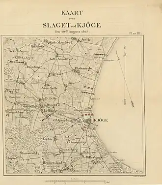 The Battle of Køge was fought on 29 August 1807 between British troops besieging Copenhagen and Danish militia raised on Sjælland as part of the Gunboat War. It ended in British victory and is also known as 'Træskoslaget' or 'the Clogs Battle', since many of the Danish militiamen threw their heavy wooden clogs away when they were fleeing.