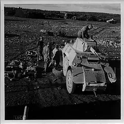 The sappers and miners laboured on the road while the battles on the Sanchil and Dologorodoc features continued. By midday on 26 March, they had repaired the road through the gorge.[31] In the early hours of 27 March, the British artillery turned onto Zeban and Falstoh. The 29th Brigade passed through the 9th Indian Brigade to attack at 04:30 but found the defenders had withdrawn and were able to occupy Falestoh Ridge and the two Zeban summits unopposed. The Italian position was untenable and by first light the Royal Air Force (RAF) was reporting their withdrawal along the road from Keren to Asmara. The defenders on the Sanchil ridge were less fortunate and the Savoia Grenadiers and Bersaglieri were cut off and left with no option but surrender. Fletcher Force was in Keren by 10:30 and was then sent in pursuit along the Asmara road.[29]