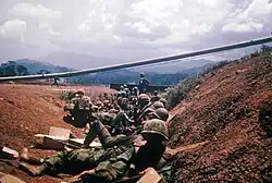 ![]() The United States military lost twelve aircraft during the Battle of Kham Duc, including this CH-47 Chinook that was shot down while attempting to land on the airfield | |||||||