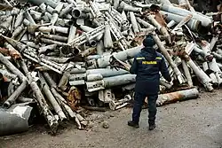 The Security Service of Ukraine stated on 6 March that Russian BM-21 Grads were shelling the Kharkiv Institute of Physics and Technology, which houses a nuclear research facility, and warned it could lead to a large-scale ecological disaster.[104] The International Atomic Energy Agency stated the next day that the nuclear research facility had reportedly been damaged but there was no radiation leak.[105] Local emergency officials stated that at least eight civilians had been killed in the shelling on the city overnight.[106] The Azerbaijani consulate in the city was meanwhile severely damaged[107] and the Albanian consulate was demolished.[108]