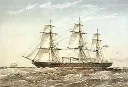In addition to the contingent of conventional sailing warships, the French squadron brought three experimental ironclad warships that had recently arrived from France. These, the first three ironclad batteries of the Dévastation class—Lave, Dévastation, and Tonnante—had been sent to the Black Sea in late July, but they arrived too late to take part in the siege of Sevastopol.[5] These vessels, the first ironclad warships, carried eighteen 50-pounder guns and were protected with 4 inches (100 mm) of wrought iron armour. Observers speculated that these untested warships would be ineffective in combat, owing to their slow speed and poor handling.[8]