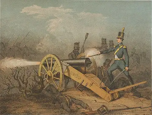 At Lappfjärd the Swedish commander, von Vegesack, had greatly overestimated the Russian strength and thus failed to deliver a crushing defeat.[1] A Swedish outpost was soon established at Ömossa which consisted of one battalion from the Uppland Infantry Regiment and two guns from the Svea Artillery Regiment, led by Wilhelm von Schwerin; it was attacked by Bibikov with 1,500 men and six guns, on 6 September. The Swedes were forced back with a loss of 64 killed or wounded, but not before several Russian attacks had been repulsed (among others, made by the Cossack Life Guards Regiment). Schwerin's stubborn defense at the guns allowed the Swedes to retreat in good order.[3]