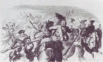 ![]() Prussian infantry attack to the Austrian cavalry during the battle | |||||||