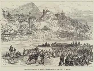 ![]() Austrian Occupation of Bosnia: Troops crossing the Bosna at Maglai (The Illustrated London News, 1878) | |||||||