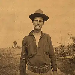 Sources generally agree that the first shots were fired by Private William Walter Grayson (1876, England – 1941, San Francisco), an Englishman who had migrated to Nebraska with his parents c. 1890. Having worked as a hostler, he had enlisted as a volunteer soldier in Lincoln, Nebraska, in May 1898, a month after the Spanish–American War erupted, and had deployed with his unit to the Philippines in June 1898.[10] Grayson's unit, the First Nebraska Volunteer Infantry under Colonel John M. Stotsenburg, had been encamped in Santa Mesa, Manila, since December 5, 1898.[11] During their encampment, there had been incidents on and around the San Juan Bridge, located just to the east of their encampment area.[12]