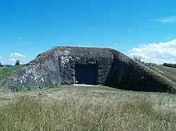 The Merville Battery was composed of four 6-foot-thick (1.8 m) steel-reinforced concrete gun casemates facing the English Channel, built by the Todt Organisation. Each was designed to protect First World War-vintage Czech M.14/19 100 mm howitzers.[11] Other buildings on the site included a command bunker, a building to accommodate the men, and ammunition magazines. During a visit on 6 March 1944, to inspect the defences, Field Marshal Erwin Rommel ordered the builders to work faster, and by May 1944, the last two casemates were completed.