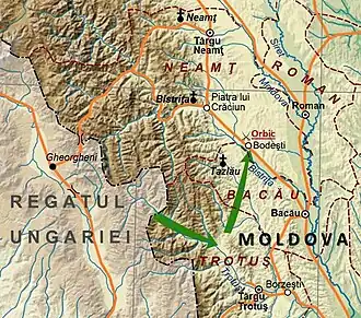 The Battle of Orbic was a battle between the armies led by Stephen the Great and Petru Aron[1][2] that took place in Orbic (today, a district of Buhuși).