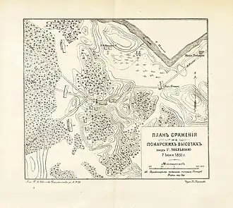 The Battle of Ponary heights (Russian: Сражение на Понарских высотах; Polish: Bitwa pod Ponarami), also knowing Battle of Vilnius was one of the most important events of the November uprising, when on June 19, 1831, Gelgud's corps was defeated near Vilna, ending the war in Lithuania.