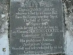 The second obelisk, in memory of Captain James Hislop, displays the following text:[4]