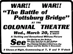 - ^ "EMPIRE FILM HIRE SERVICE"/"Feature Films Available"/"Battle of Pottsburg Bridge", The Bioscope (London, United Kingdom), July 11, 1912, p. 80. Retrieved via Internet Archive, June 5, 2023.