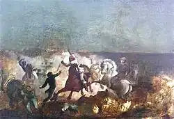 ![]() Arturo Michelena, Vuelvan Caras. The painting depicts the incident in which José Antonio Páez ordered his llaneros to turn around and attack the Spanish cavalry that was pursuing them. | |||||||