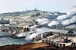 A contemporary watercolour of the Battle of Saint-Charles depicting the rout of Brown's rebels.