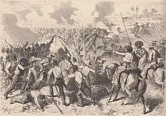 The tirailleurs algériens rapidly retreated, leaving behind the marines who were overpowered and slaughtered. Gazielle and forty of his men took up a defensive position around the captured cannons. Meanwhile, Captain Véron and his officers fell while trying to protect the French howitzers. As ammunition ran low, Gazielle ordered a general retreat while the Mexican continued to fire on the withdrawing forces. The Mexican uhlans from Jalisco launched three more charges until the French were driven back to the bridge on the Humaya River. Unfortunately for them, the Mexicans had already occupied the bridge. Colonel Gazielle was desperate to cross the river and sought a shallow ford on the river. With the rest of the company of thirty men, they were chased by the Mexican cavalry and he became trapped on an island in the river. Here the colonel decided to surrender. All but one of the tirailleurs were taken to Culiacan prison.[6]: 310–313 Domingo Cortés was able to escape from the battlefield as well.[2]: 459 Bel Kassem Ben Mohammed was wounded in the battle and after three and a half months he died of pneumonia at the military hospital of Parral, Chihuahua.[7]: 95