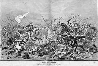 On August 2, the Polish crown took their banners and began crossing the Bug River. They attacked the Crimean battle formations. The Crimeans, led by Bogatyr-Girey, used their usual tactic, feigned retreat, and lured them into the territory of Sokal, they began bombarding them with a hail of arrows which forced the Poles to retreat to the bank river. Ostrogski, seeing what was happening, led a force of 1,000 cavalry and attacked the flank of the Crimenas to cover the rear of the army. This improved the situation better for the moment; however, the Poles had to retreat to the right bank of the Bug River, suffering heavy losses. The army lost many knights and Osrtogski barely managed to break through the Crimenas lines and escape with his life.[6][7] The Polish-Lithuanian army suffered 1,200 killed.[8]