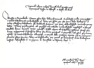 ![]() Letter from King Sigismund ordering Oldřich II of Rosenberg to demolish Tábor | |||||||