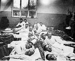 As the number of capitulated became too large, it was impossible to shoot everyone. More than 10,000 Reds were gathered to the Central Square, where they had to stand for nearly 24 hours. The prisoners were then transferred to a prison camp established in the eastern Kaleva district. During the next five months, 1,228 Reds died in the Tampere camp of executions, disease or hunger.[5]
