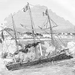 The Battle of Thuận An (20 August 1883) was a clash between France and Vietnam during the period of early hostilities of the Tonkin Campaign (1883–1886). During the battle a French landing force under the command of Admiral Amédée Courbet stormed the coastal forts that guarded the river approaches to the Vietnamese capital Huế, enabling the French to dictate a treaty to the Vietnamese that recognised a French protectorate over Tonkin. The French strike against the Vietnamese in August 1883, sanctioned by Jules Ferry's administration in Paris, did more than anything else to make a war between France and China inevitable, and sowed the seeds of the Vietnamese Cần Vương national uprising in July 1885.[1]