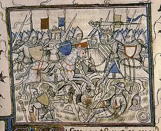 ![]() Illuminated miniature of the battle from a manuscript of the Grandes chroniques de France, 1390-1410 | |||||||