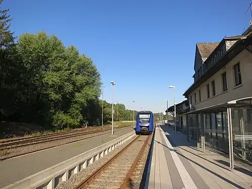 Baumholder station (German: Bahnhof Baumholder) is a railway station in the municipality of Baumholder, located in the Birkenfeld district in Rhineland-Palatinate, Germany.