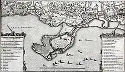 The city fell to the Swedes,[10][8][4] who destroyed all of the fortifications until March.[11] The plunder taken from the city was very rich, amounting to 40 barrels of gold.[4] The amount taken was also "more than the Swedish army had taken before."[9] The reason for there being so many valuables is mainly because many nobles and bishops throughout upper Swabia had sought refuge in the city and took their valuables with them. Wrangel would then claim the title "Admiral of Lake Constance" which was likely a mocking retaliation for the appointment of Wallenstein as "General of the Oceanic and Baltic Seas" in 1628. However, there was some substance to the title, as Wrangel had captured 13 ships that were stationed in Bregenz, which he rearmed for operations on the Lake Constance.[8]
