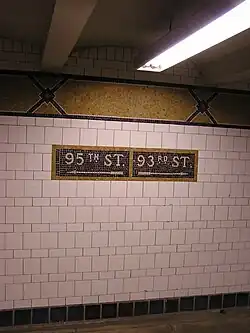 38. ^ Cox, Jeremiah (June 9, 2009). "A close-up of 95 Street written in mosaic into the mosaic trim". subwaynut.com. Retrieved April 19, 2020.