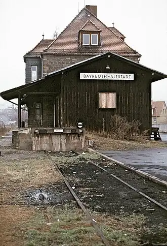 ![]() Bayreuth Altstadt station in 1987 | ||||||||||||||||||||||||||||||||||||||||||||||||||||||||||||||||||||||||||||||||||||||||||||||||||||||||||||||||||||||||||||||||||||||||||||||||||||||||||||||||||||||||||||||||||||||||||||||||||||||||||||||||||||||||||||||||||||||||||||||||||||||||||
