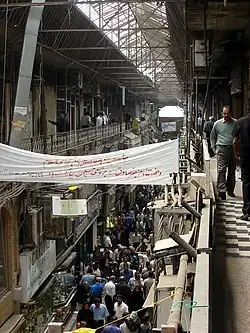 A broader, more recent definition includes traditional merchants outside of Iran, "a social class...in places where the society is in the midst of an awkward modernization; where the bazaar is in some stage of transition between the world of A Thousand and One Nights and that of the suburban shopping mall", an example being traditional merchants (also Muslim) who back the Muslim Brotherhood in Egypt.[1] However, it has also been noted that merchants in other Middle Eastern countries are predominantly minority non-Muslim populations without the political influence of bazaari in Iran.[3]