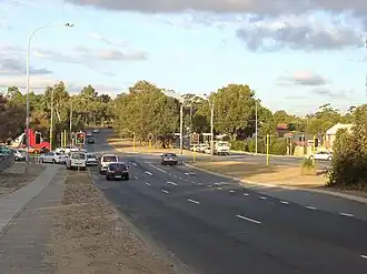 Beach Road is a major east–west road in the northern suburbs of Perth, Western Australia, connecting Perth's inner northern beachside suburbs and inland state housing areas with shopping and public transport facilities at Warwick and the Malaga industrial area. It was mostly built between 1967 and 1974,[1] and is a dual carriageway for most of its length, except for a small western part between Marmion Avenue and the coast, which is a minor residential distributor road and is discontinuous at Marmion Avenue.[2] Beach Road also serves as a local government boundary. From Alexander Drive to Wanneroo Road, Beach Road is the boundary with the City of Wanneroo on the northern side and the City of Stirling on the southern side. From Wanneroo Road to the coast Beach Road is the boundary with the City of Joondalup (part of City of Wanneroo until 1998) on the northern side and the City of Stirling on the southern side.