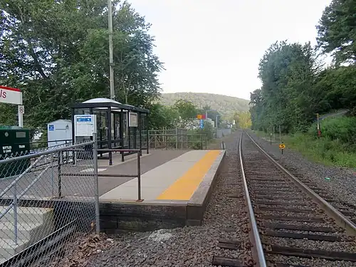 Beacon Falls station is a commuter rail stop on the Waterbury Branch of the Metro-North Railroad's New Haven Line, located in Beacon Falls, Connecticut. With just 14 daily passengers as of 2018, the station is one of the least used stations in the entire Metro-North system.