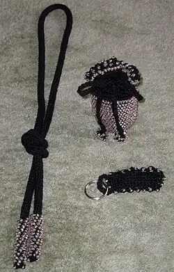 Bead crochet is a crochet technique that incorporates beads into a crochet fabric. The technique is used to produce decorative effects in women's fashion accessories. The word "crochet" is derived from the French croche or croc meaning "to hook".[1] Published descriptions of bead crochet date from around 1824, although it was probably common before then.[2] At one time, bead crochet was thought by some people to be appropriate only for rich people.[3]
