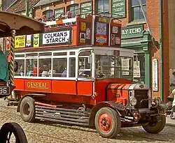 - replica London General Omnibus Company open-top double-decker DET 720D to design of 1910. In Service.