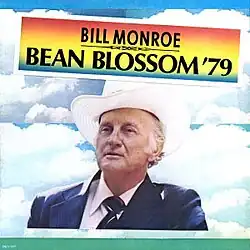 The popularity of the Bean Blossom Festival continued to increase throughout the 1970s, with expected attendances rising from 35,000 in 1972 to 50,000 by 1977.[1] The 1979 edition of the nine-day festival took place between June 9 and 17, 1979 — just a month after the death of former Blue Grass Boys member Lester Flatt. Accordingly, Monroe paid tribute to his former bandmate onstage at the festival, playing the co-written "Little Cabin Home on the Hill" in his memory; the song was later re-recorded in the studio, however, and blended with crowd noise for inclusion on the album.[2] Bean Blossom '79 marked the last recordings of bassist Randy Davis as a member of the Blue Grass Boys, as he left shortly after the festival.[2] The album was released by MCA Records eight months after it was recorded, on February 15, 1980.[3]