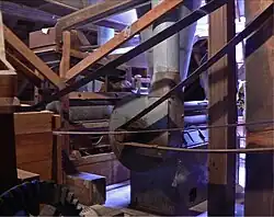 The mill is a wooden building with a stone foundation and a metal roof.[5] It remained in continuous operation for well over a century, slowing from full capacity only in the late 1970s when the miller decided to go into partial retirement. Since then, the mill has continued in use: partially as a milling museum, and partially as a gristmill.[2] In 1975, it was listed on the National Register of Historic Places,[1] qualifying because of its architecture and because of its significance in Ohio's history.[5] Today, the mill is operated by the Friends of Bear's Mill, a non-profit organization dedicated to maintaining and operating the mill as a historic landmark.[6]