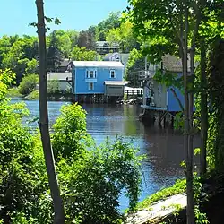 The Bear River is a minor river in western Nova Scotia, Canada. Flowing from south to north, it is 40 kilometres (25 mi) long from its headwaters to its discharge into the Annapolis Basin, some 6 kilometres (3.7 mi) east of Digby.[1] The river is tidal for the last 9.7 kilometres (6.0 mi) of its length.[2] The community of Bear River (which today calls itself "The Tidal Village")[3] is situated near the head of the tide where shipbuilding took place in the nineteenth century.