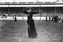 She began competing in local archery competitions in 1894. In 1908, Archery was the only sport available to women in which they could take part in the Olympic games[4] because it involved no running, enabling women to be fully clothed while partaking.[5] It was a sport which involved costly equipment and access to private land in which would enable them to practise on.[6] In 1908 Olympics Ireland was still under British rule, meaning there was no Irish team to exist, and any athletes wishing to partake were obliged to compete under the Union Jack flag.[6]