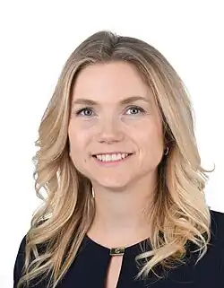 She was previously a member of the Moderate Party and sympathized with the Christian Democrats for a period before joining the Sweden Democrats in 2018, citing her concerns on terrorism, illegal immigration and gang activity in Sweden and Europe. She unsuccessfully stood for the SD during the 2019 European Parliament election.[4] She has also served as a county councilor and an executive on the local party committee for the SD in Ekerö.[5] For the 2022 Swedish general election, she contested the Riksdag constituency list of Stockholm County and was successful at winning a seat.[6]