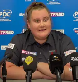 After finishing eighth on the 2024 Development Tour Order of Merit ranking,[65] she accepted her invitation into the final stage of 2025 PDC Qualifying School (Q-School).[66] On the third day she made the quarter-finals, before losing to Darryl Pilgrim 6–3.[67] On the final day, she whitewashed Kevin McDine and Ted Evetts 6–0 before losing in a last-leg decider to Carl Sneyd, therefore did not secure a PDC Tour Card.[68][69]